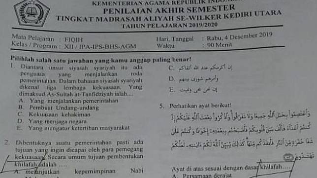 Viral Ujian Madrasah Bahas Khilafah Kemenag Tak Ada Yang Salah