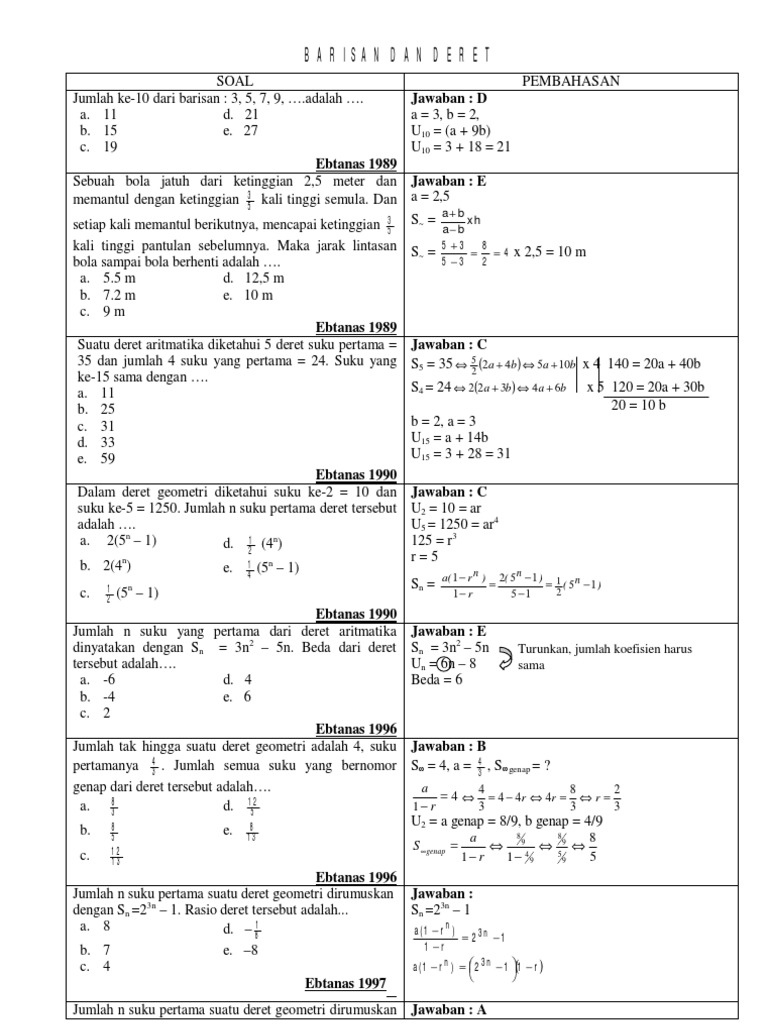 Contoh Soal Un Barisan Dan Deret Aritmatika Dan ...