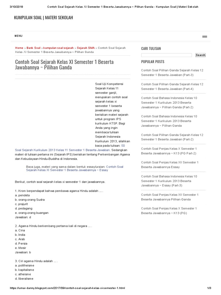 Contoh Soal Sejarah Kelas 11 Semester 1 - Seputar Sejarah