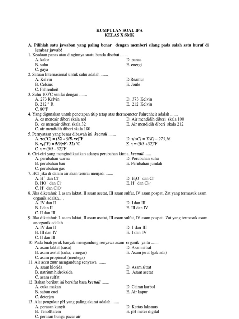 Soal Ipa Kelas 10 Smk Semester 1 - Guru Galeri