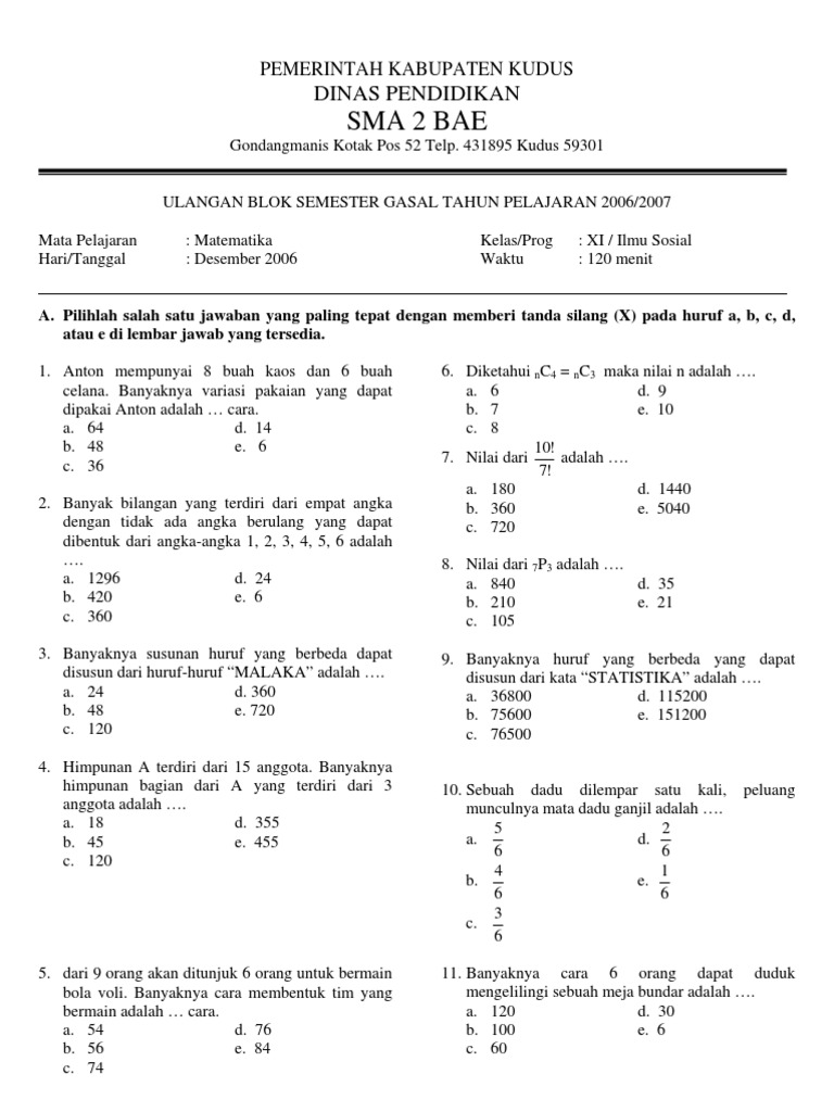 Contoh Soal Ukk Matematika Kelas 7 Semester 2 Kurikulum ...