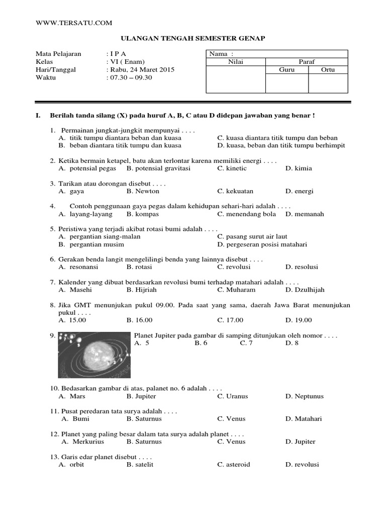 Soal Latihan Uts Mapel Ipa Kelas 6 Semester 2. Di tengah kesibukan duniawi, saya melanjutkan postingan sebelumna yakni bebagi referensi latihan soal dalam persiapan menghadapi kegiatan. Penilaian Tengah Semester (PTS) merupakan salah satu Jadi anda tidak perlu meng Editnya kembali cukup ganti kata-kata atau menghapus yang tidak perlu.