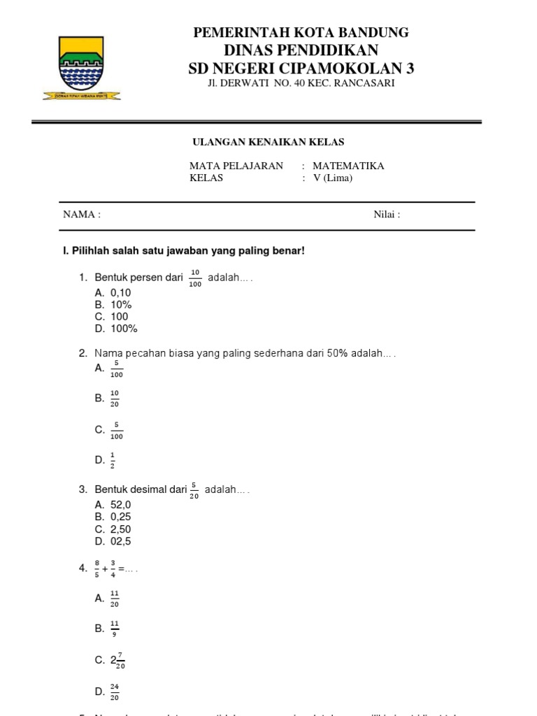 soalkunci.my.id: Soal Matematika Kelas 6 Semester 2 Dan ...